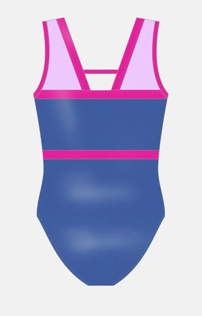 This leotard is a PRE ORDER and will be shipped from Australia on or around March 6th if ordered by January 22nd. It features grape mystique fabric with a hot pink mystique belt and straps and pale pink mesh. The leotard is available with either high-quality AB rhinestones or sequins.